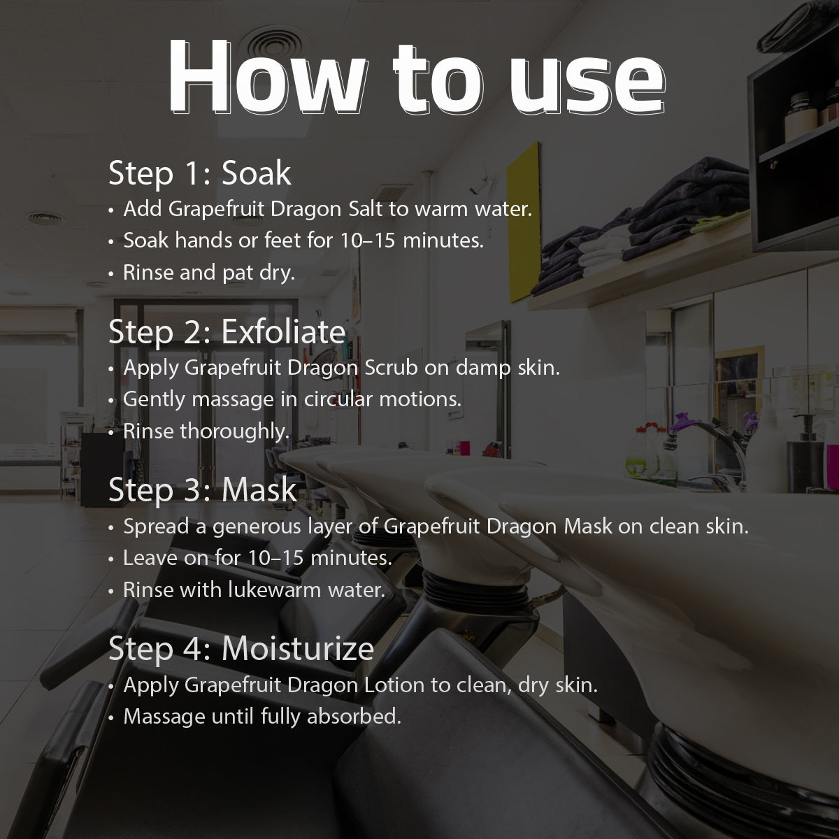 • Apply Grapefruit Dragon Scrub on damp skin.